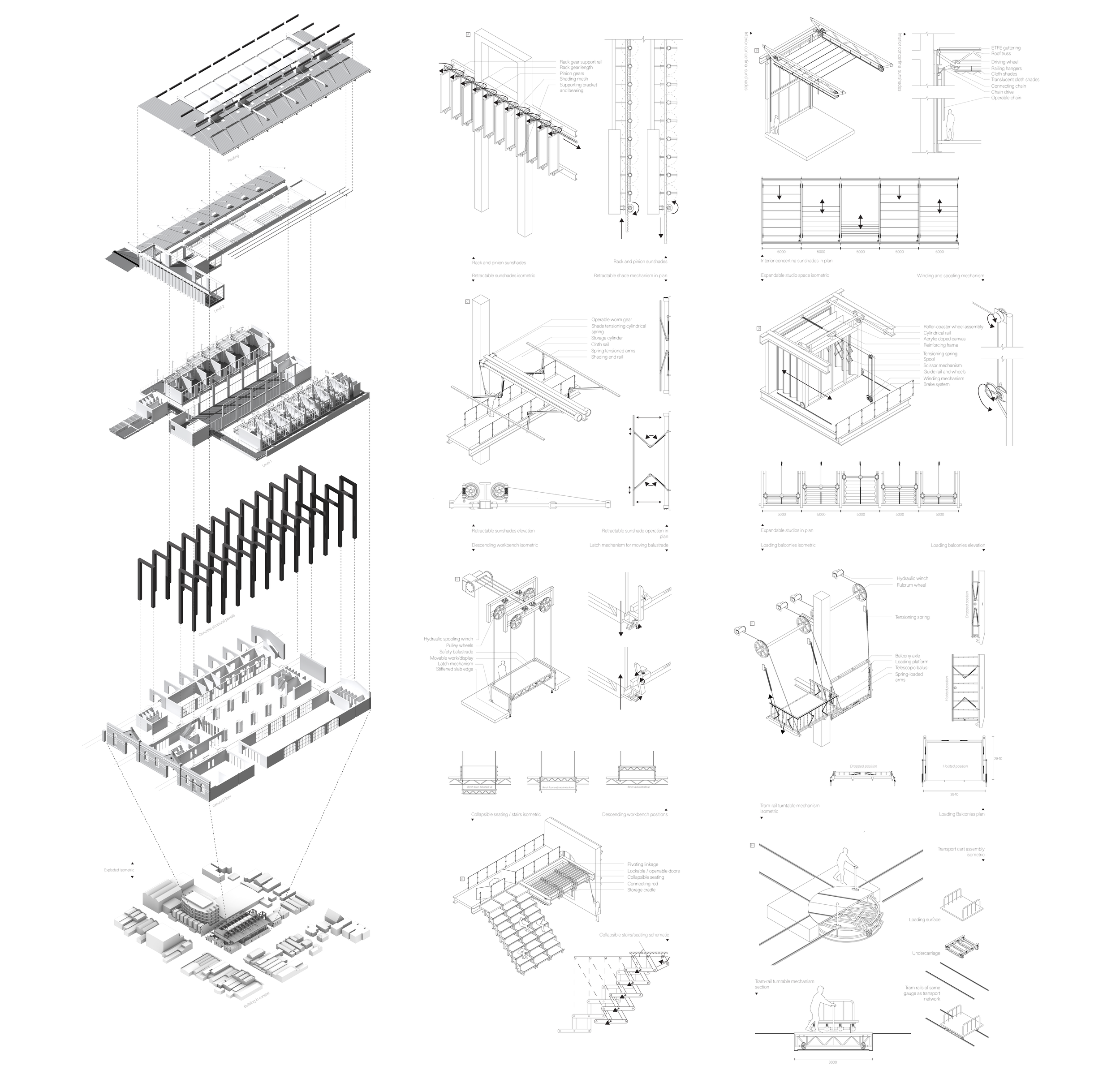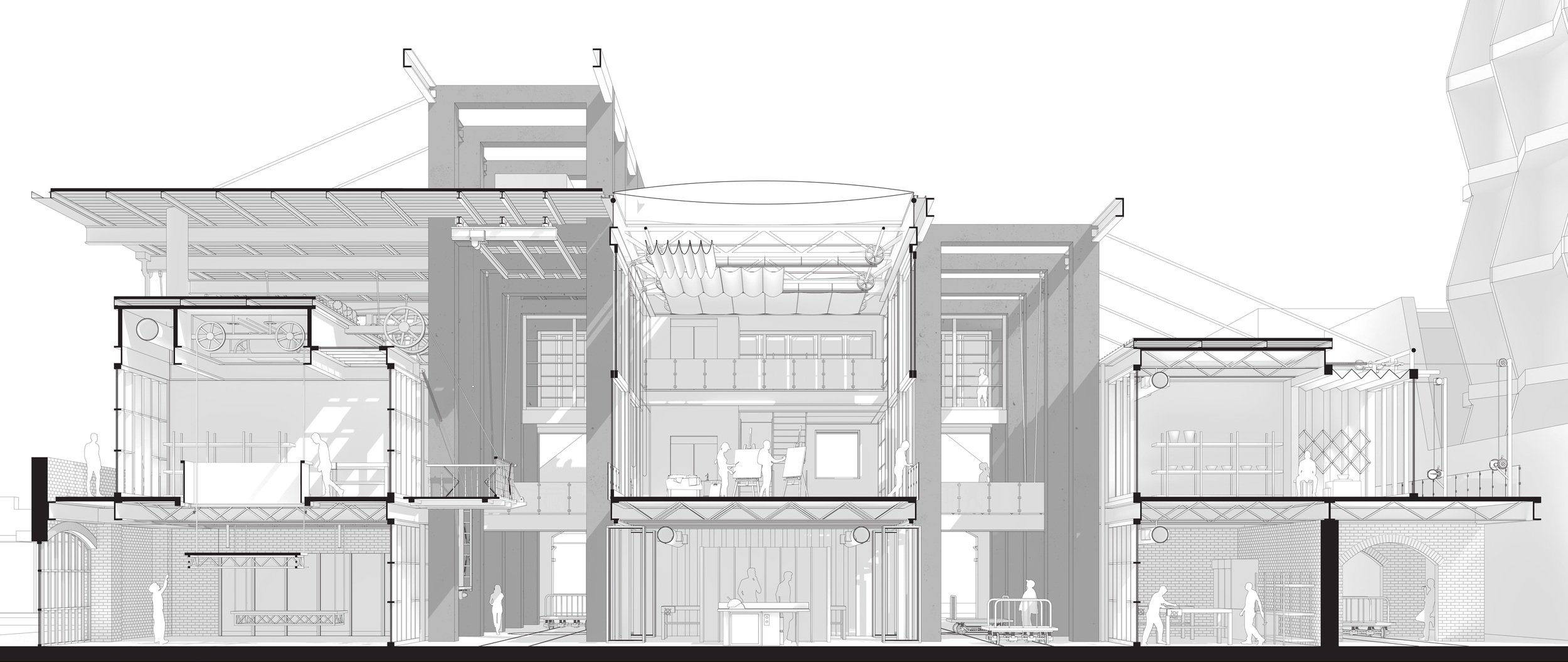 As a means to promote an architectural examination of this relationship, this thesis proposes a building that relies on legible, analogue mechanisms of spatial adaptability - mechanisms which are operationally dependent on human bodily autonomy. Additionally, the program of site instigates a wider analysis of technology’s inertial effect on human sociology and looks to celebrate the very human and poetic act of making. Cumulatively this project aims to establish a sustainable and critical relationship with technology - not just architecturally, but more broadly too.